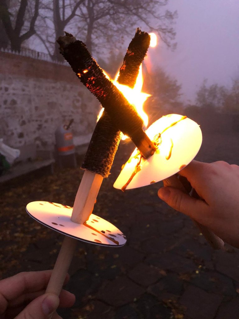 Mein Lebensgefährte Dirk von White Wolf Rituals war mit mir am Sonntag im Rahmen seines Rituals Nach dem Tod bleibt dein Leben – Sonnenaufgang zu Samhain ganz früh auf dem Leopoldsberg. Die Dunkelheit der schwindenden Nacht wurde nur von unseren Fackeln erhellt. Der aufgezogene Hochnebel verstärkte die mystische Stimmung. In Stille wanderten wir den bekannten „Nasenweg“ hinauf.