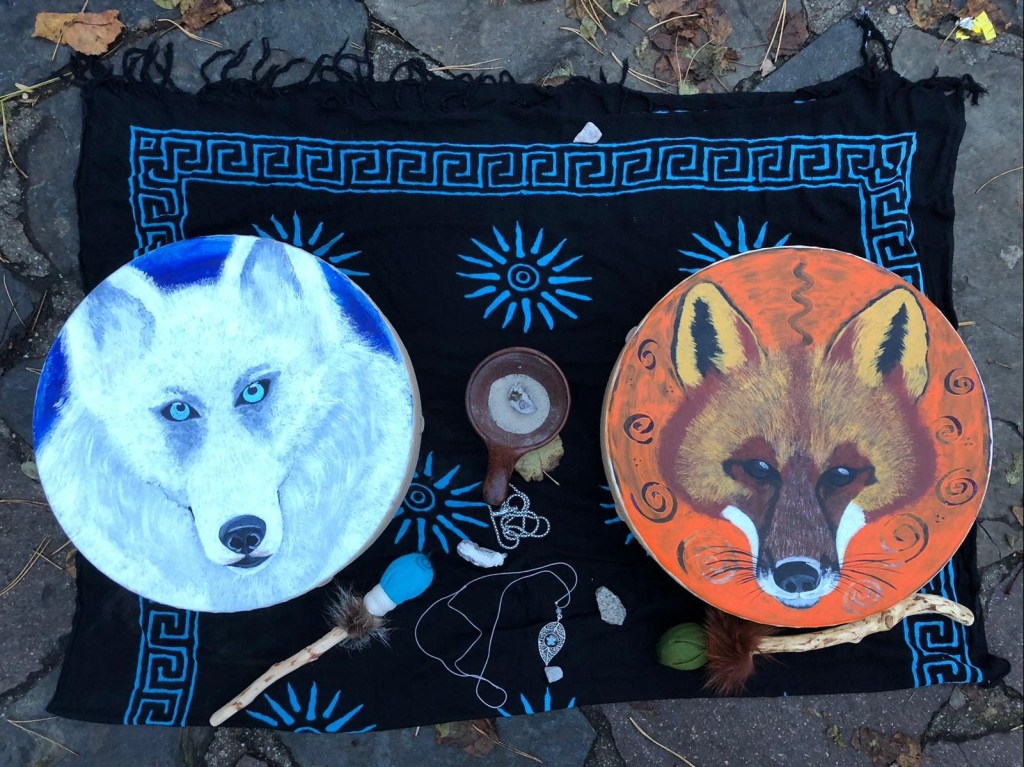 Nach dem Trommeln kam ein früher Spaziergänger zu uns auf die Terrasse und lobte uns für das Spiel. Er meinte, das Trommeln würde sehr gut zur Stimmung passen. Das hat mich sehr gefreut. Solche Dinge passieren häufig, wenn ich (zusammen mit anderen) mit der Anderswelt zu tun habe, Spirituelles oder Rituale mache. Die Leute spüren, dass etwas Bedeutsames passiert und haben Respekt davor. Niemand störte uns oder beschwerte sich. Nur freundliche Worte oder Gesten.